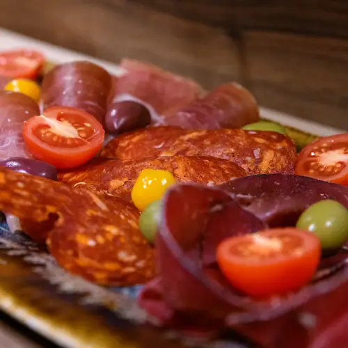 Krostino s kozjim sirom, tartufiranim medom, i tostiranom slaninom, carpaccio od cikle, pršut, domaća salama, ovčji i kravlji sir s tartufima, pršut od tune