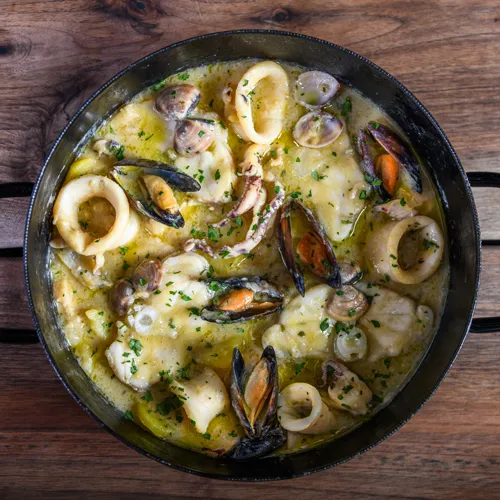 Grdobina, jadranske lignje, dagnje, vongole, krumpir
